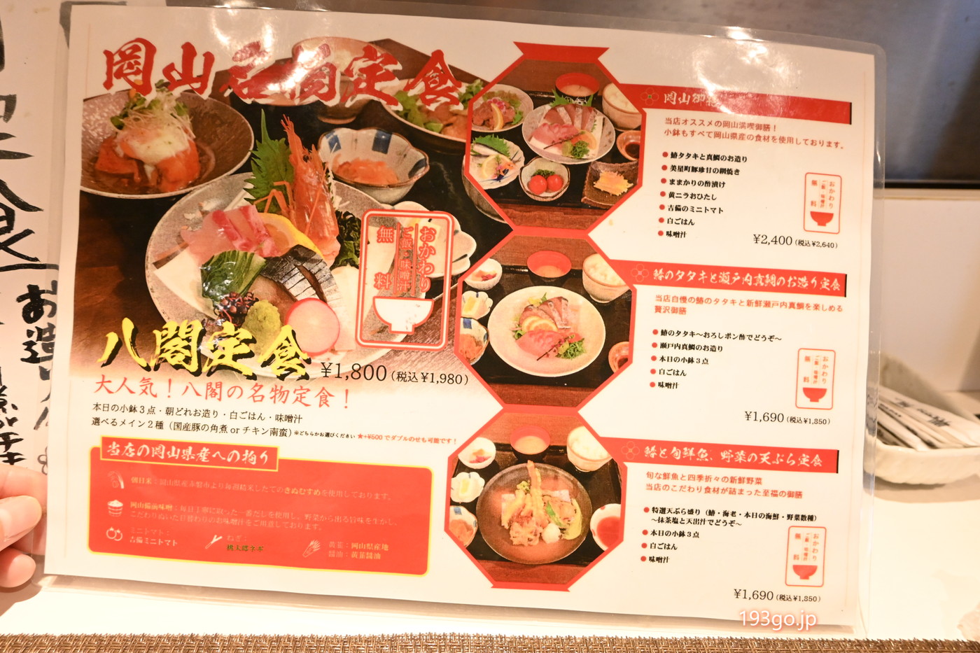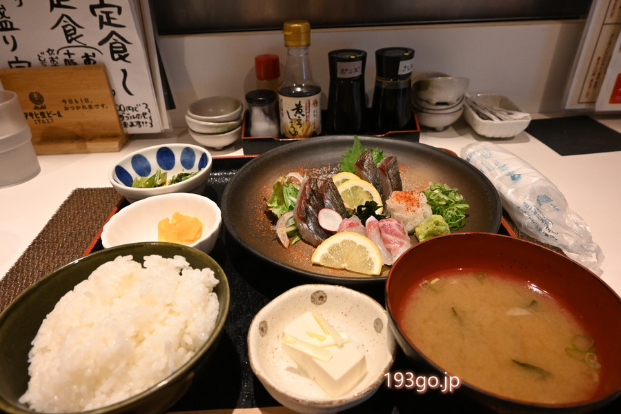 定食メニューから、鰆のタタキと瀬戸内真鯛のお造り定食を注文:1690円