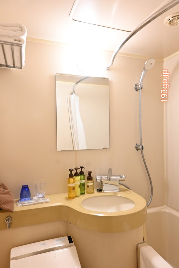 歯ブラシ、バスアイテム、ユニットバス(バスタブ有)、パジャマ(上下別)、ミニ冷蔵庫、ポット、ティーカップ、テレビ、エアコン、空気清浄機などの設備・アメニティが揃っていた。(ミネラルウォーターやティーバッグは無し)
