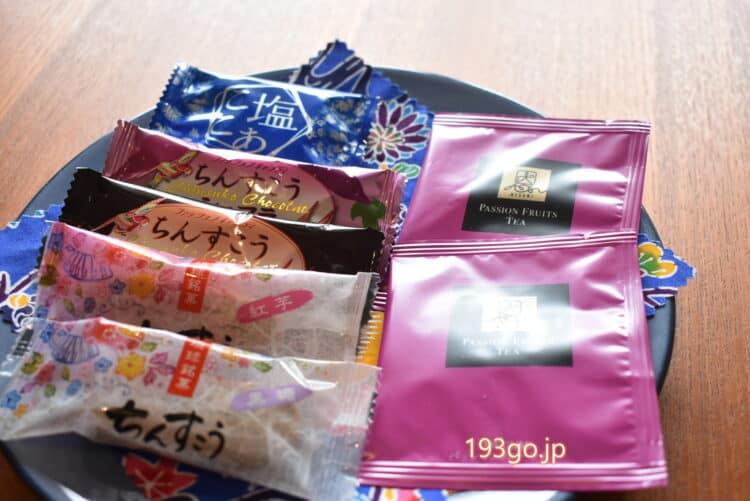 テーブルには数種類のちんすこうなど沖縄菓子も嬉しい!