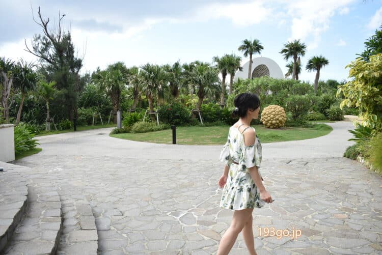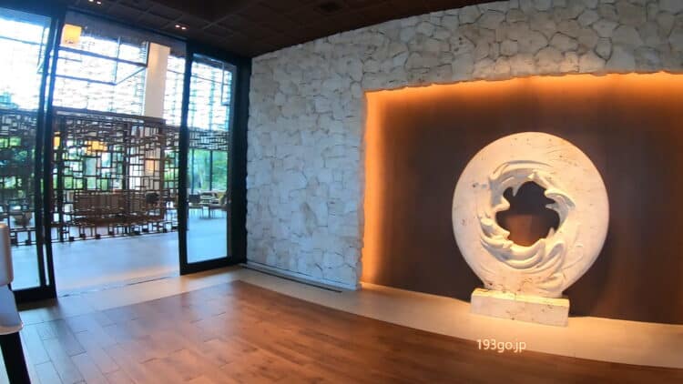 琉球石灰岩の壮大なロビー!沖縄モチーフのオブジェも