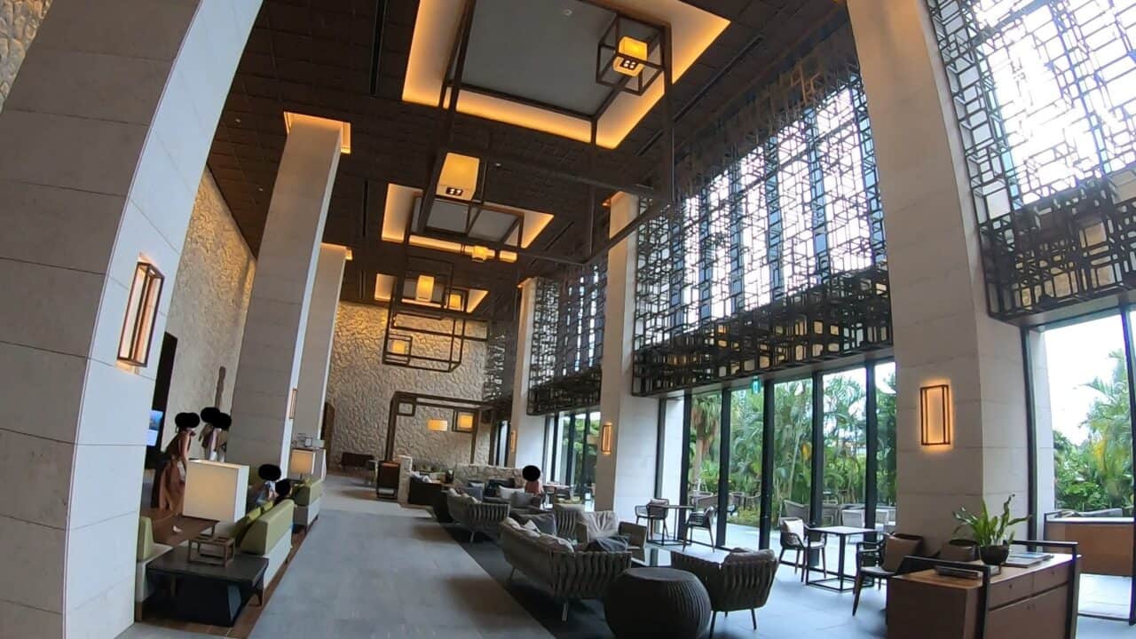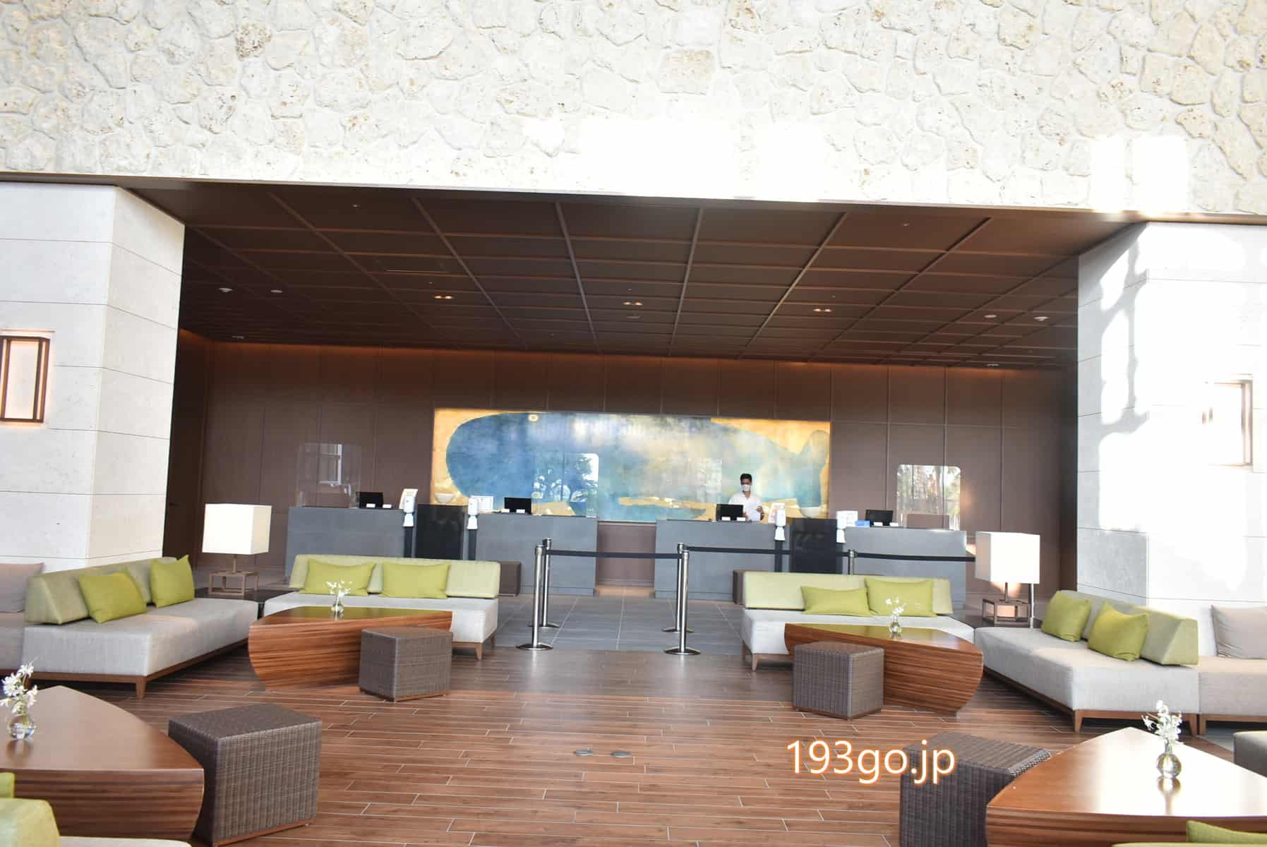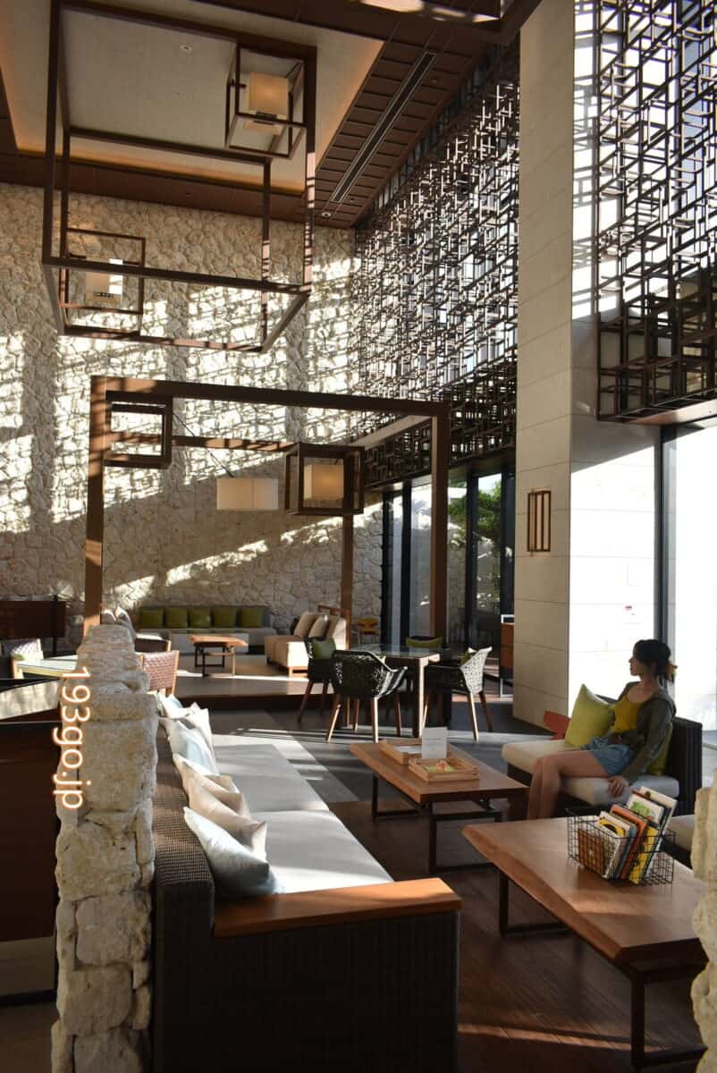 中へ入ると、天井が高く、琉球石灰岩が施された壮大なロビー!