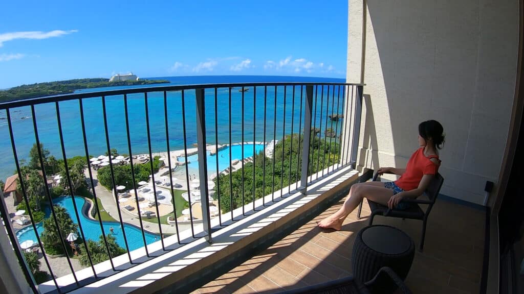 客室へ!リゾート感たっぷり、オーシャンビュー