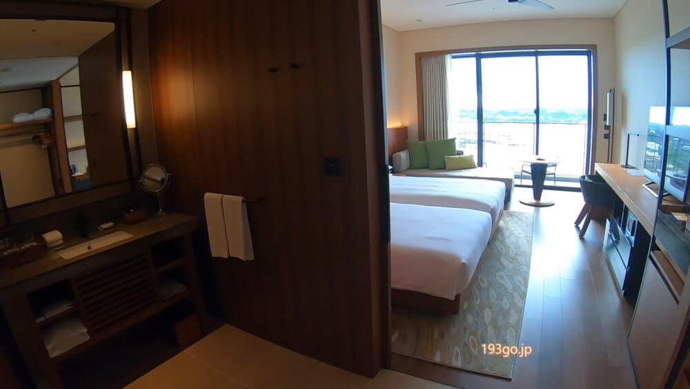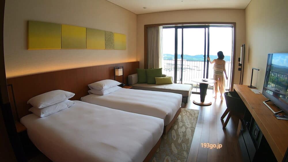 今回泊まったのはオープンエアバルコニー付きラグーンビュー「スタンダード ツイン」約38㎡の客室。