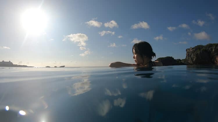 海まで続くインフィニティー!海水プールで幻想的な一枚を