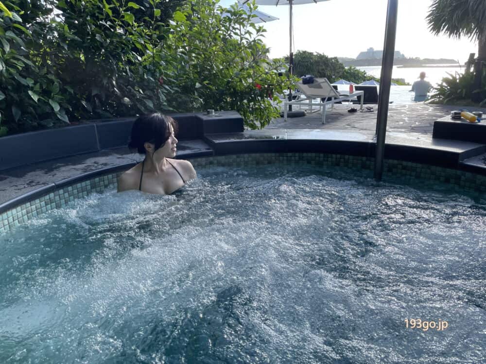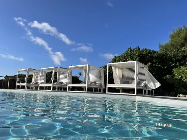 プールサイドにはパラソルやビーチチェアがいくつも置かれ、ジャグジー、バーも!