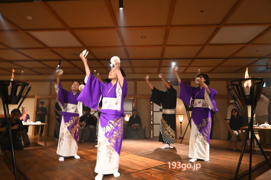 プログラムには、国の重要無形民俗文化財「隠岐国分寺蓮華会舞」や「隠岐の神楽」の特別公演、民謡の生演奏と語りなどが盛り込まれ、まるで結婚式に参加しているような一体感のある雰囲気。