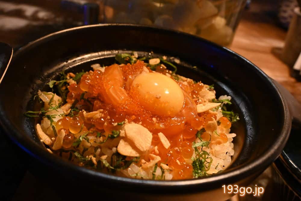 ・いくらとサーモンユッケの土鍋ガーリックライス 1738円