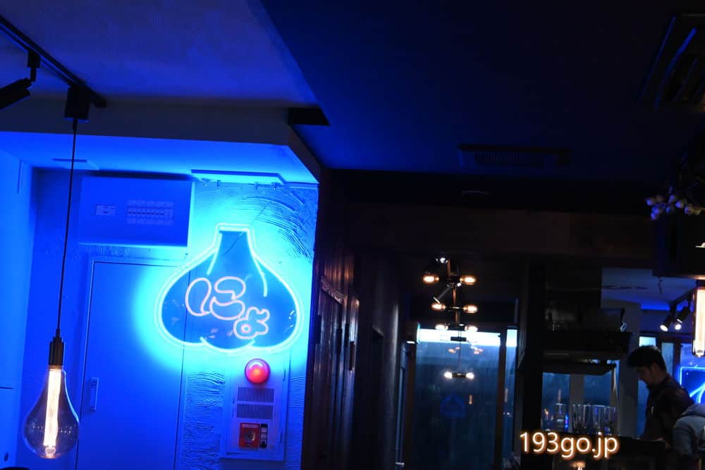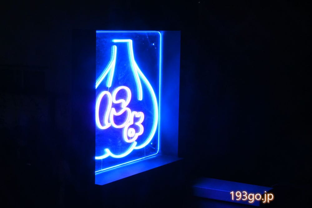 小道に入ると、ニンニクマークに「にょ」と描かれたブルーのネオン。