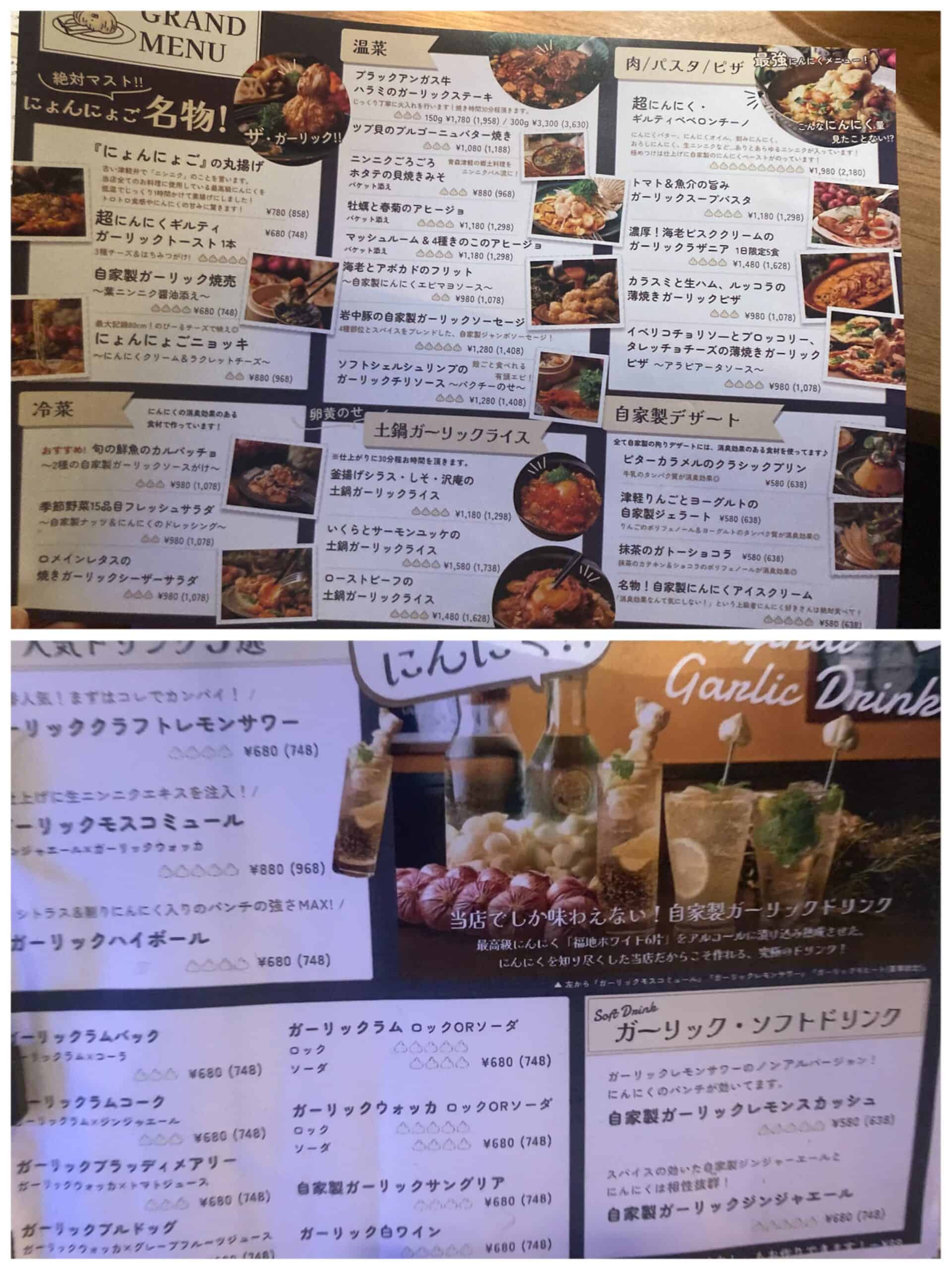 メニューを開くと、なんと、ドリンクもニンニク仕立て。