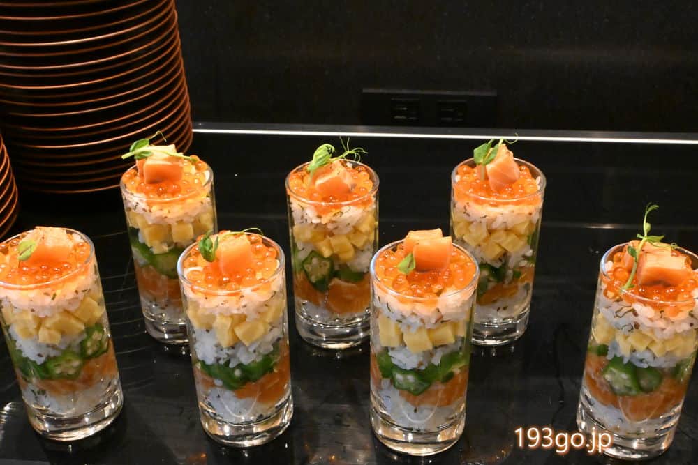 さらに、ミニグラスのちらし寿司(パフェちらし)、南樽市場のお惣菜、可愛いミニパンもズラリ。