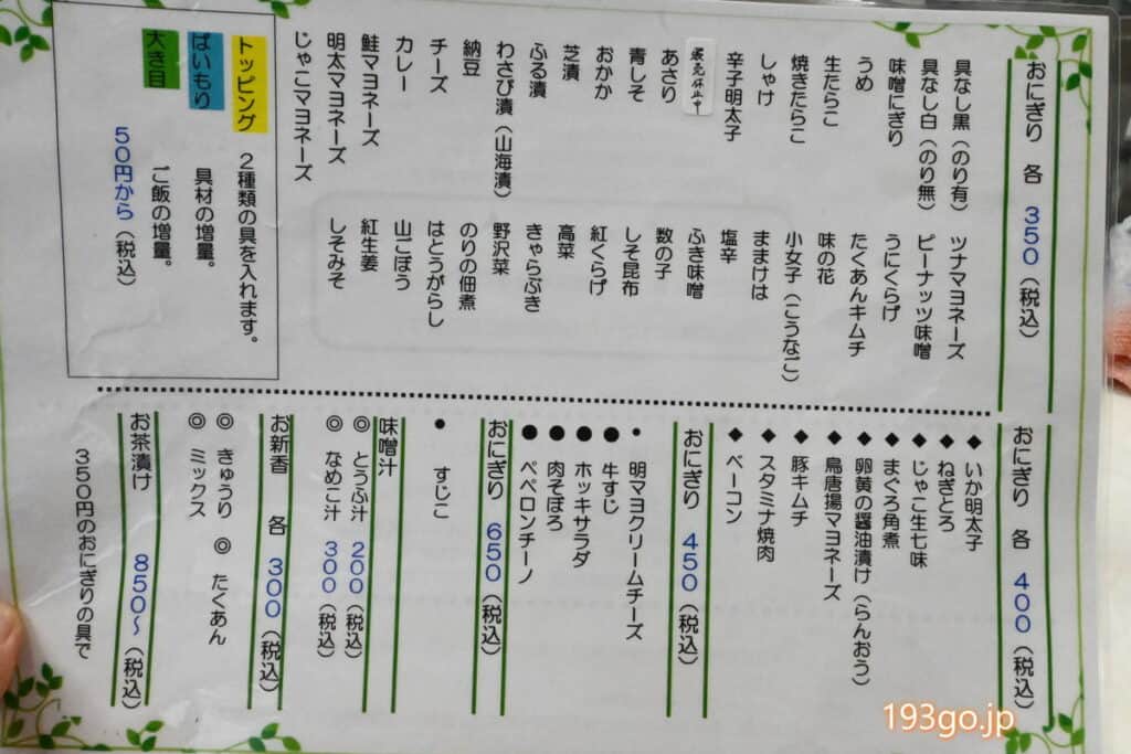 並んでる間にメニューが配られ、おにぎりを選ぶ。