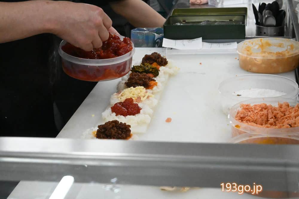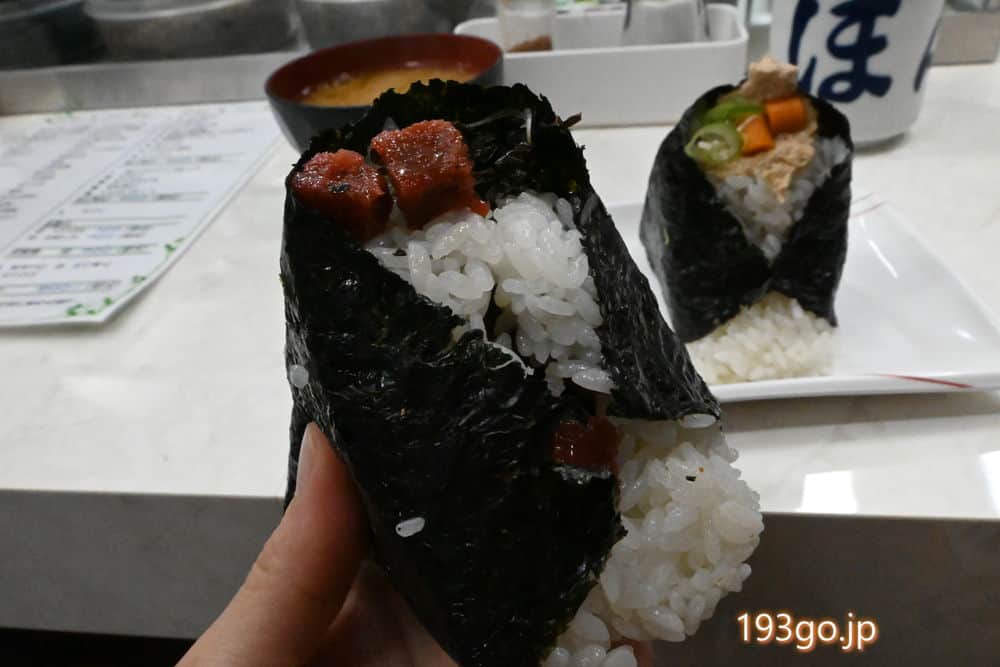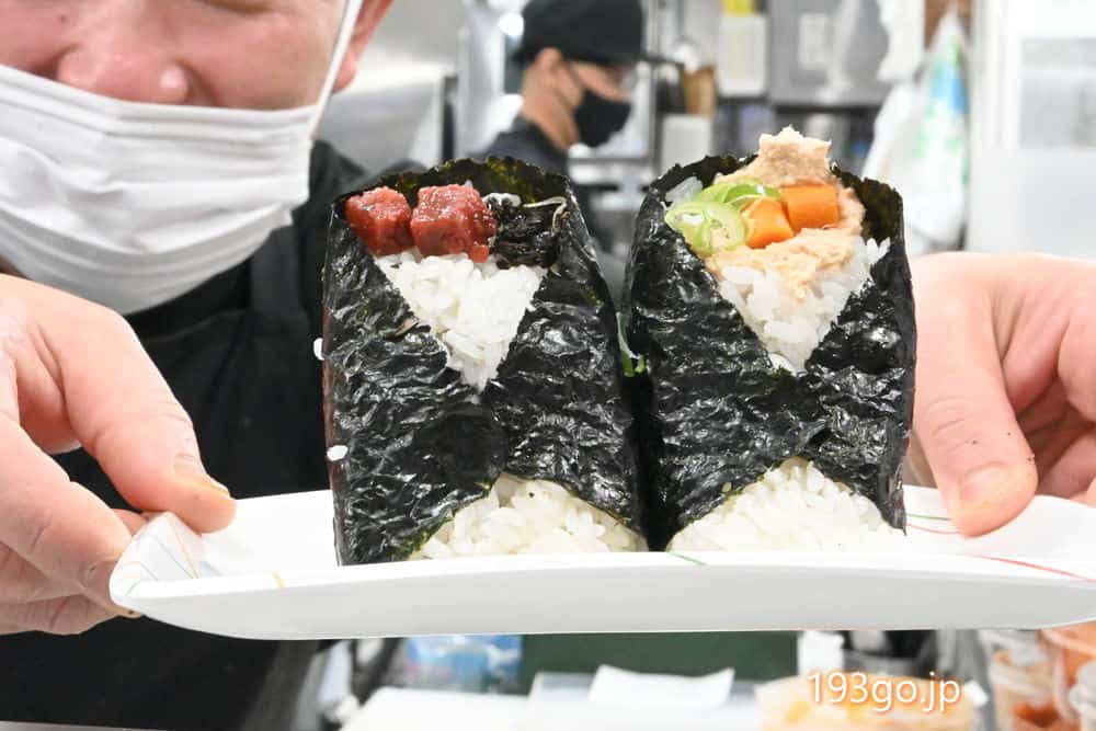 おにぎりは一個350円~。いろんなネタ(具材)がある。
