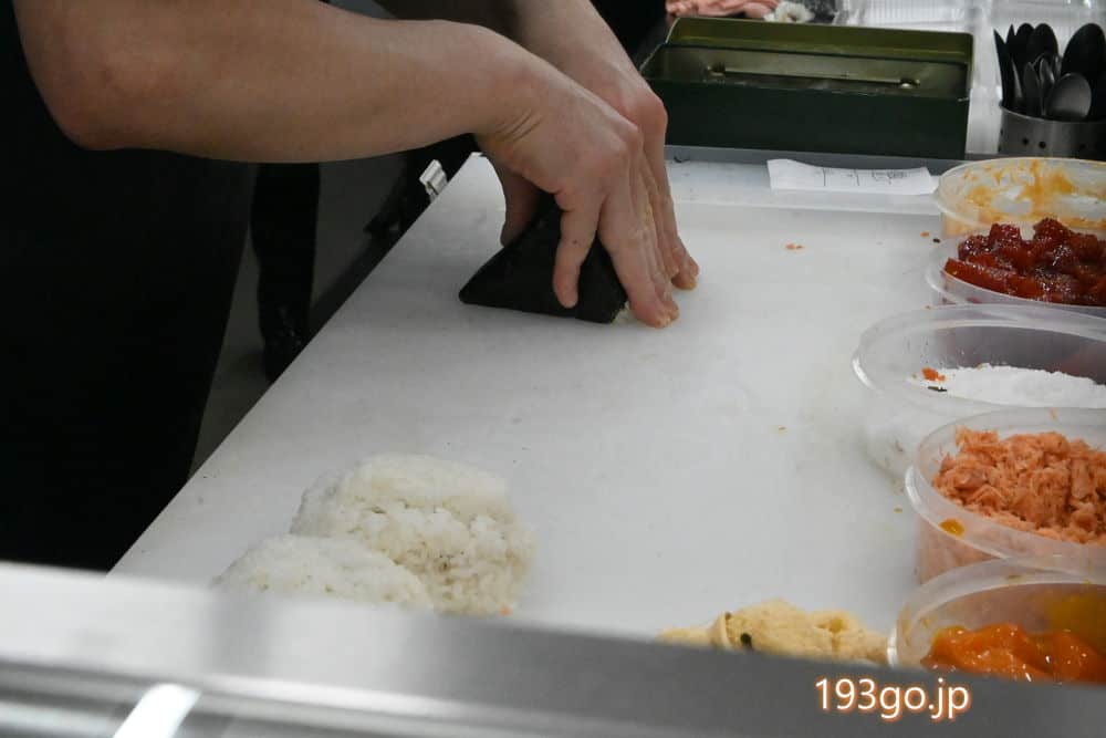 目の前でお寿司ではなく、おにぎり作る様子を見ながら、
