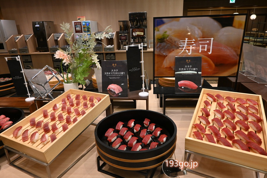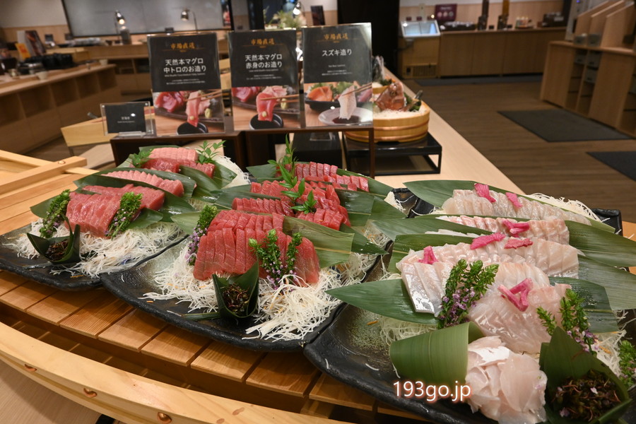 寿司や舟盛りの刺身は圧巻で、牡蠣・ハマグリ・カニ・エビ・ホタテなどを好きなだけ選び、