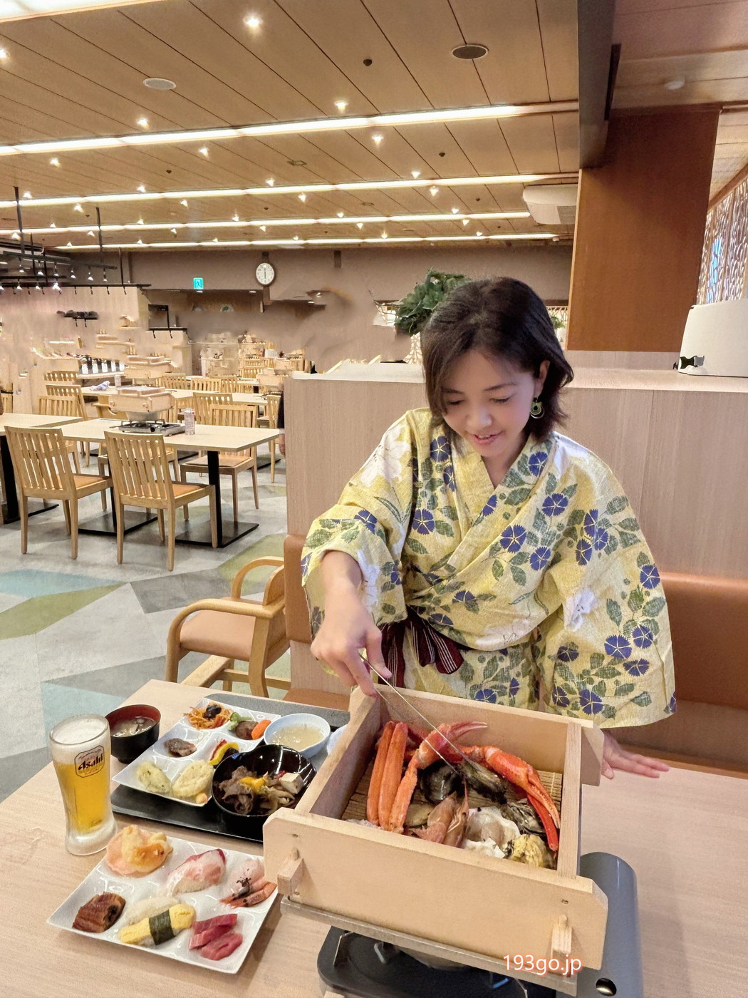 夕食は“大江戸三つ星バイキング”で海鮮と肉料理を満喫