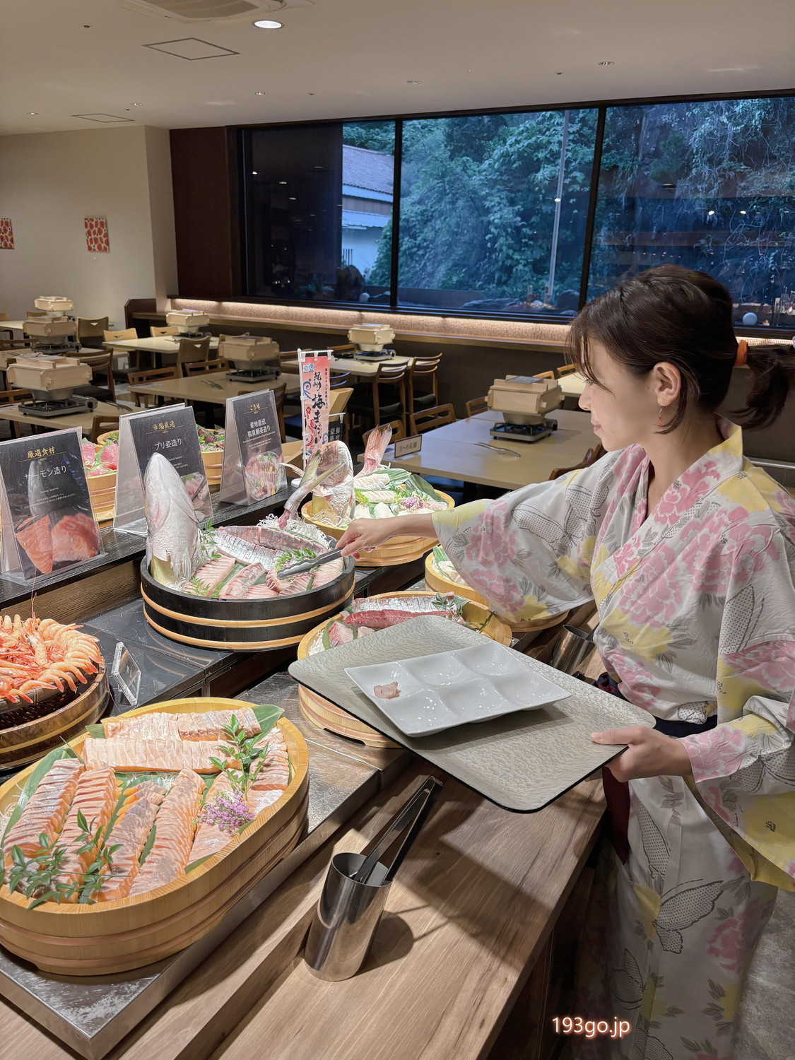 海鮮盛りだくさんの夕食バイキング!ライブキッチンとご当地メニューは?
