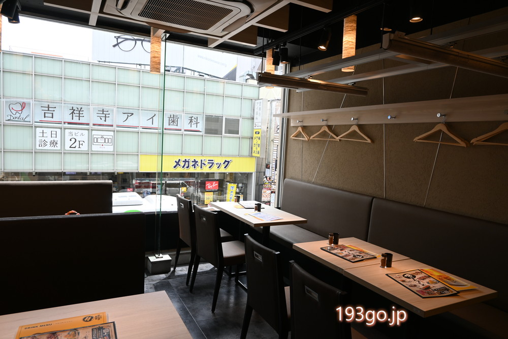 2階はテーブル席となり窓から吉祥寺の町並みが見え開放感がある。