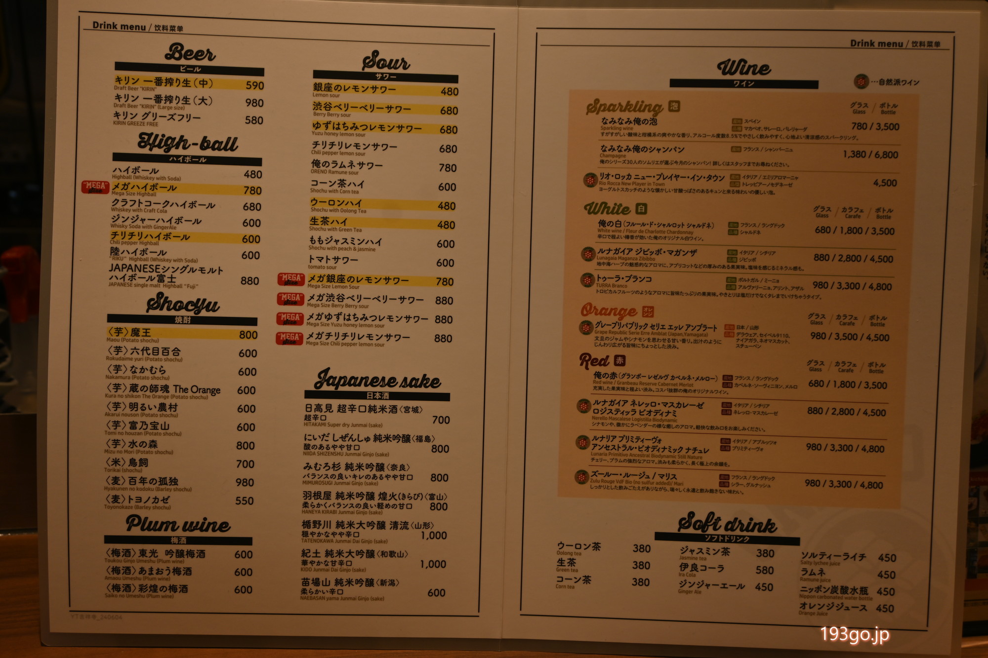 休日はランチタイムから営業をしているけど、ランチメニューは無く終日共通のメニュー。またランチタイムはお通し代はなく、ドリンクのオーダーは必要となる。