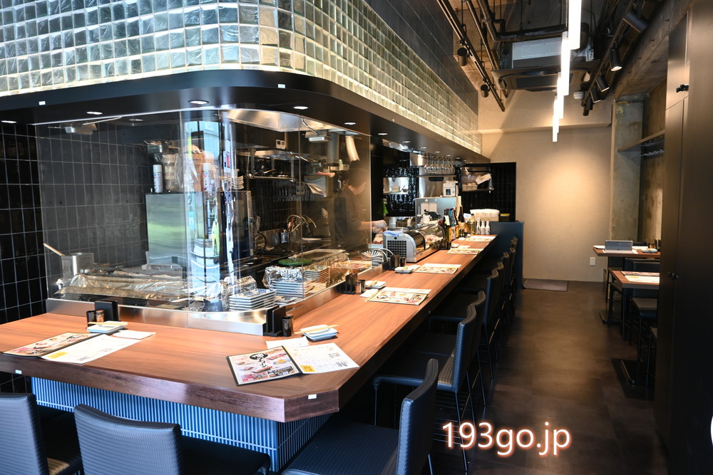 1階はカウンター席がメインで正面に設置された焼き台での炭火焼きのシーンが見られる。