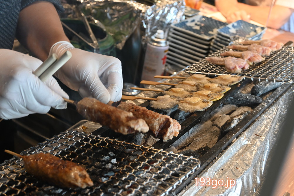 モクモクとけむりを立ち上げながら、炭火でじっくり焼き上げる串焼きは香ばしく中までジューシー。