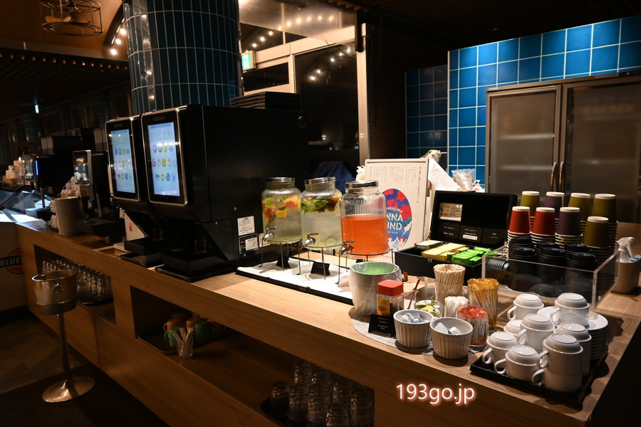 ドリンクはジュース、コーヒーマシン、ティーバッグが揃っていて、