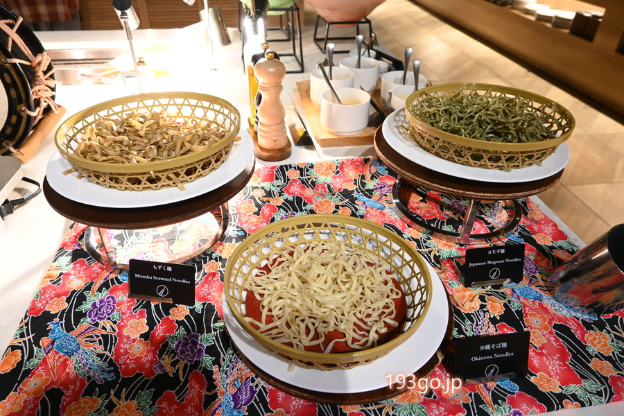 麺はスタンダード、もずく麺、ヨモギ麺、