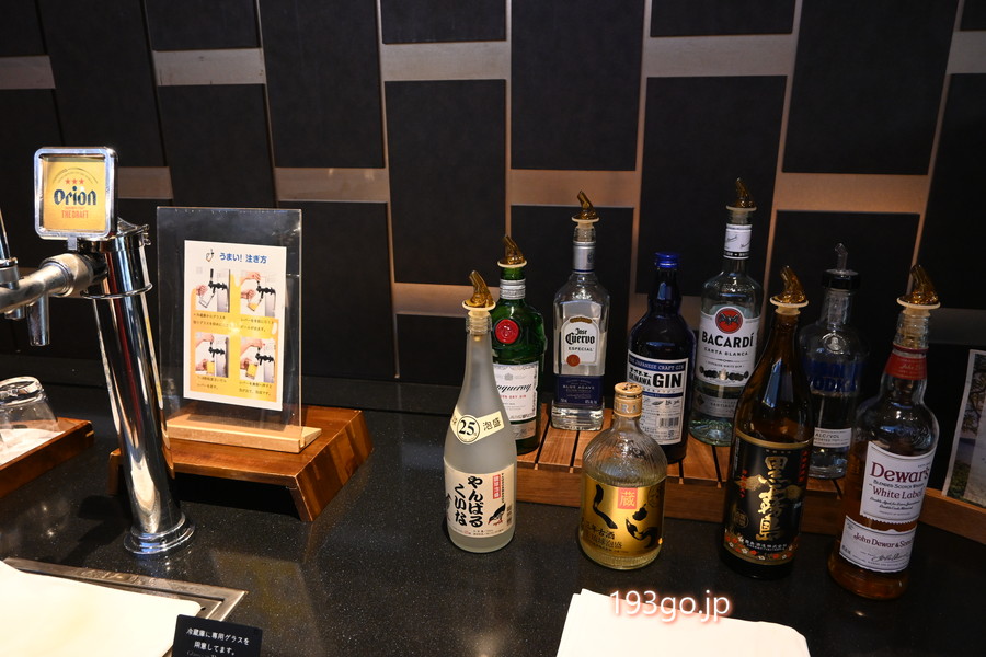 ワインや泡盛、各種リキュールのボトルが並んでいた。
