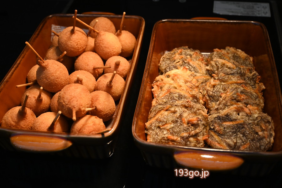 ティータイムはミニケーキやドーナツ、パンケーキ、アイス、ちんすこう、キッシュ、アメリカンドッグ、もずく天ぷらなどのスイーツ&スナックが並び、