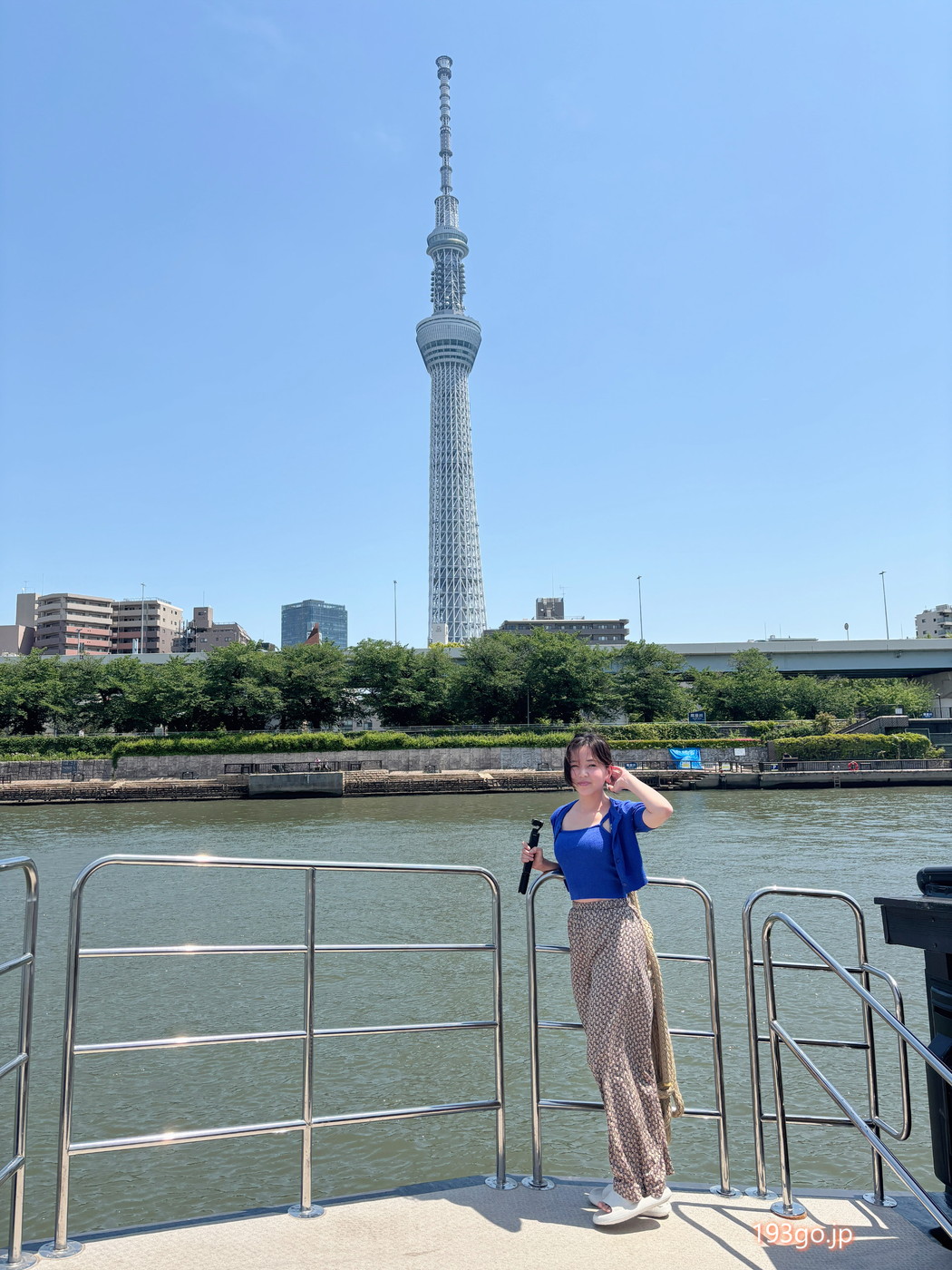 途中デッキに出て、東京の絶景をバックに記念撮影も。