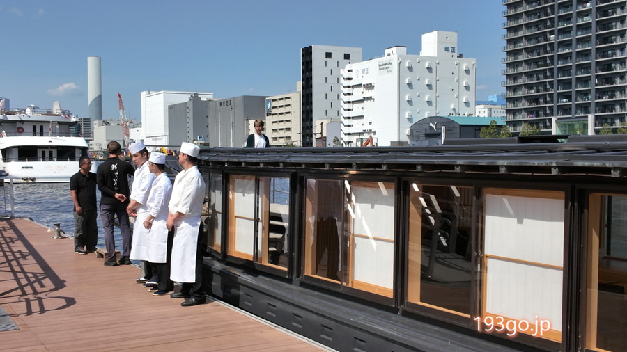 東京・天王洲アイルから出発する屋形船「鮨おりがみ」。