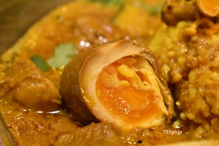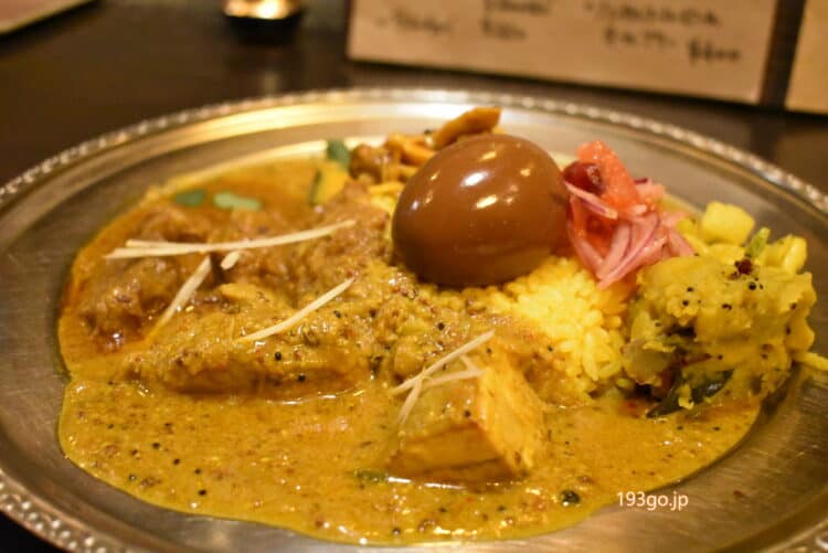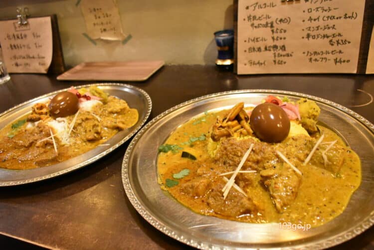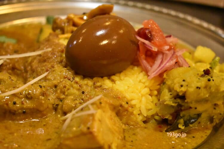 黄金色卵がツルン!サラっとした2種盛りカレーは香り高いバスマティライスと