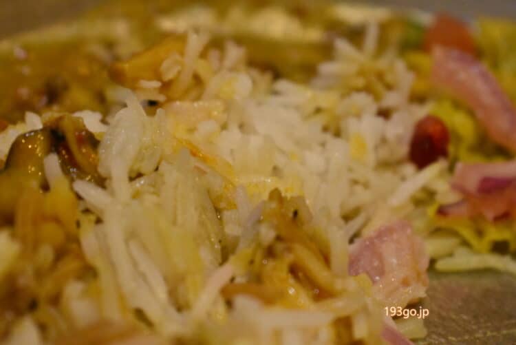 ライスはインドのバスマティライスか、白米のサフランライスが選べる。