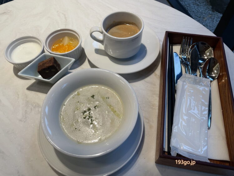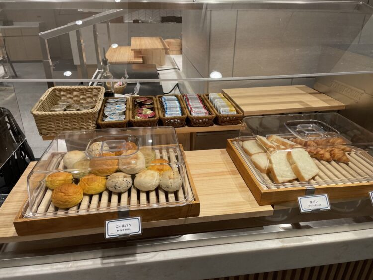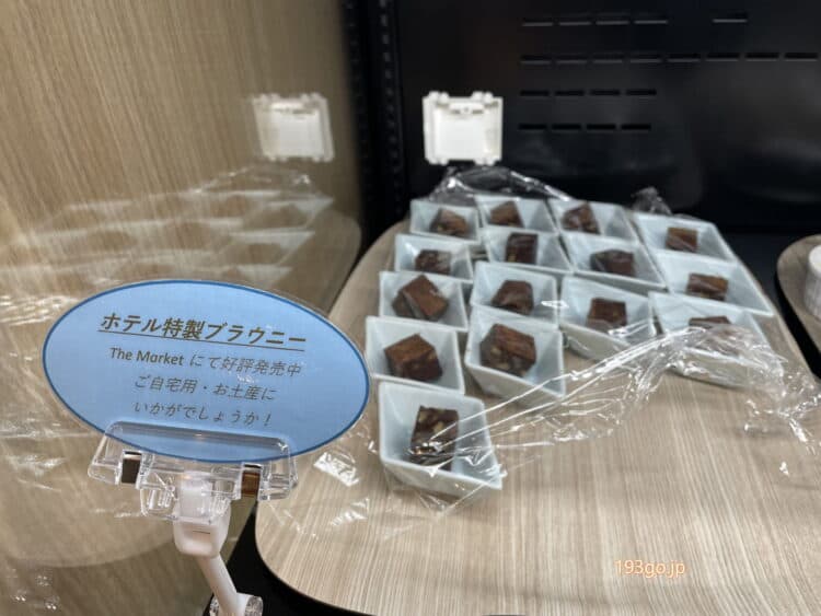 数種類のパン、ホテル特製ブラウニー(売店でも販売されている)、フルーツ