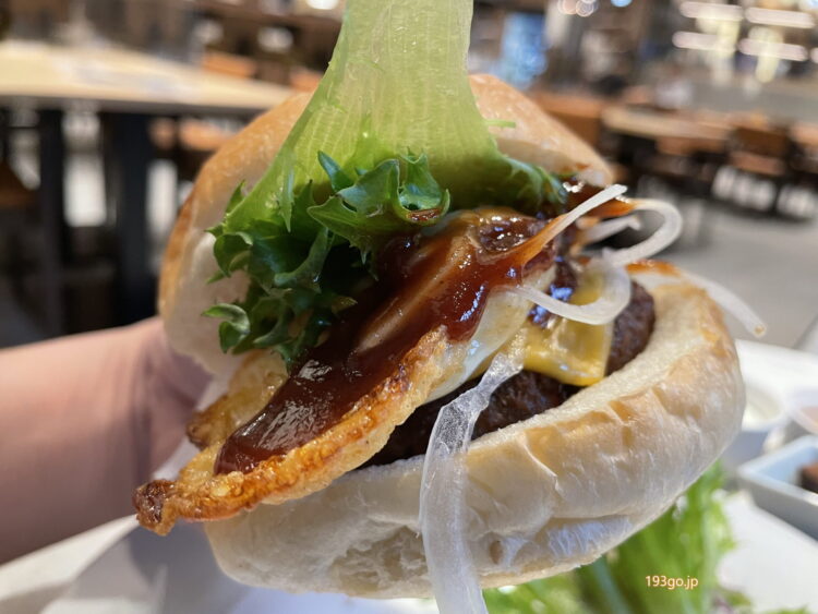パティは肉厚、半熟卵がアクセントでとろ~り