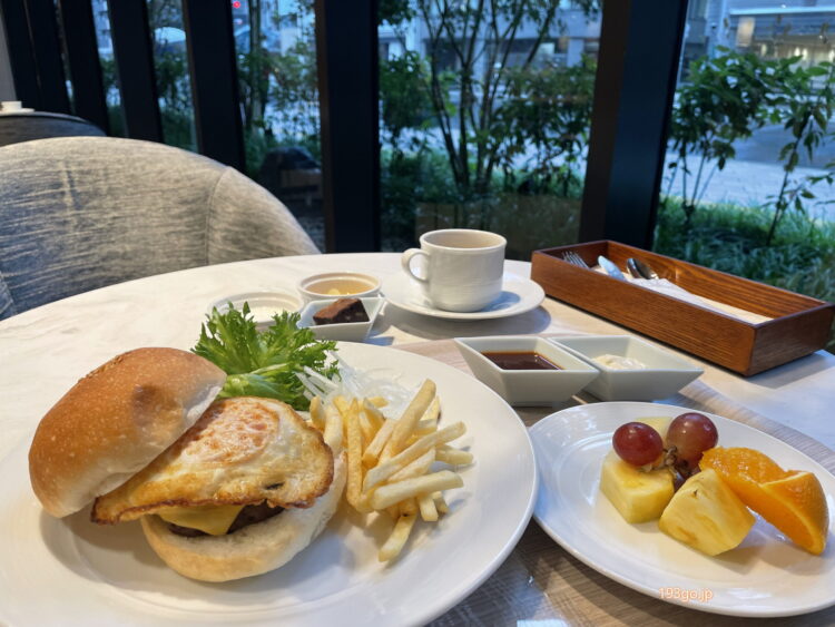 卵料理は定番だけど朝からハンバーガーは珍しいのでチョイス