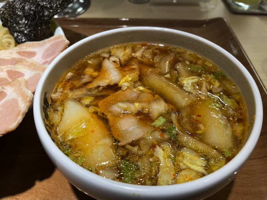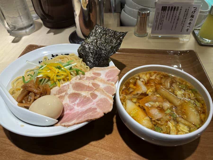「特製チャーシューつけ麺」を注文 白菜たっぷりの甘めスープ