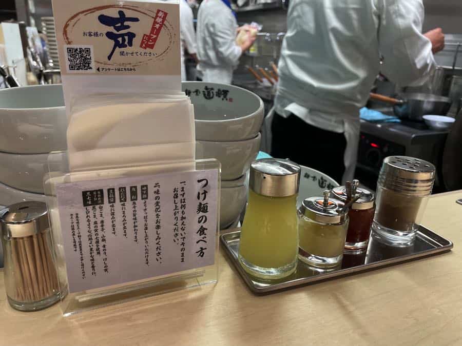 公式サイトによると、「麺屋道頓」は、「どうとんぼり神座(かむくら)」の「つけ麺」をブラッシュアップし、こだわり抜いた味を提供したいということで、新しくつけ麺専門として立ち上げたそう。