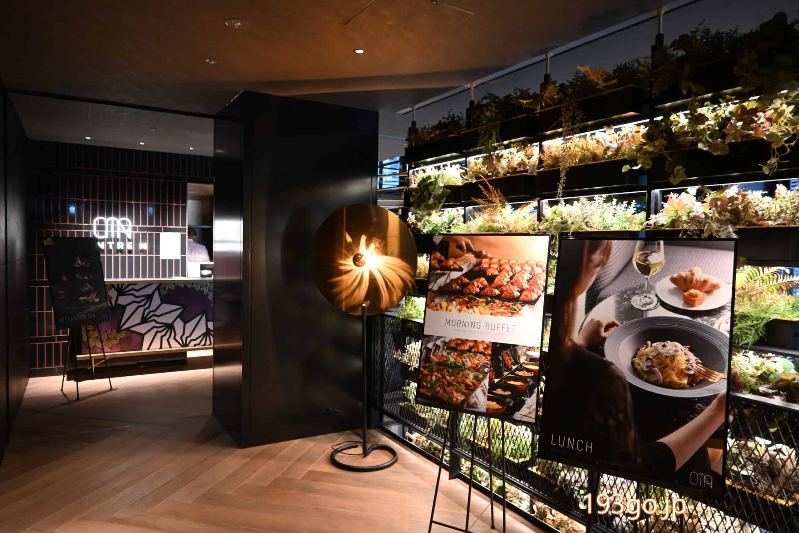 2階は朝食、ランチ、アフタヌーンティー、ディナーと楽しめるレストラン「CENTRE M(サントル エム)」、またラウンジスペースがありPC作業も可能。
