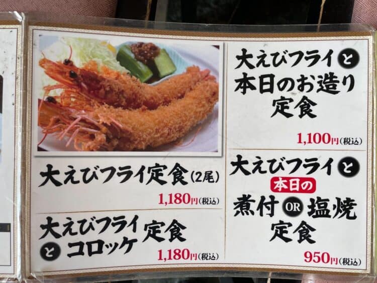 巨大海老フライの「大海老フライ」が名物の人気店。