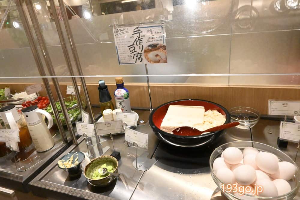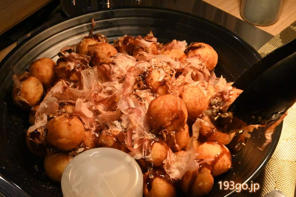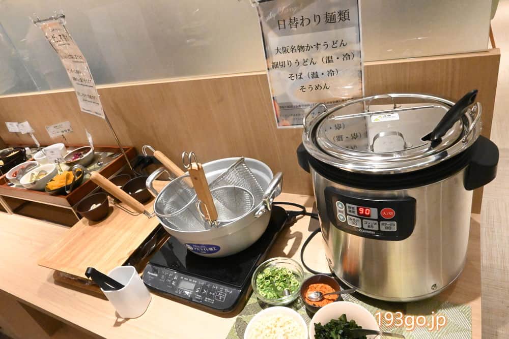 朝食はビュッフェ!大阪名物のたこ焼き、かすうどん