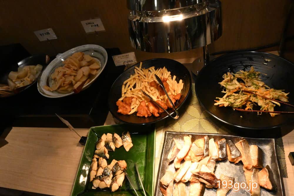 和食コーナーには、焼魚や玉子焼き、煮物、かき揚げ、コロッケ、唐揚げなど。