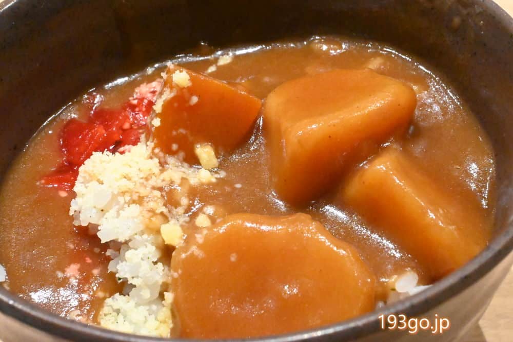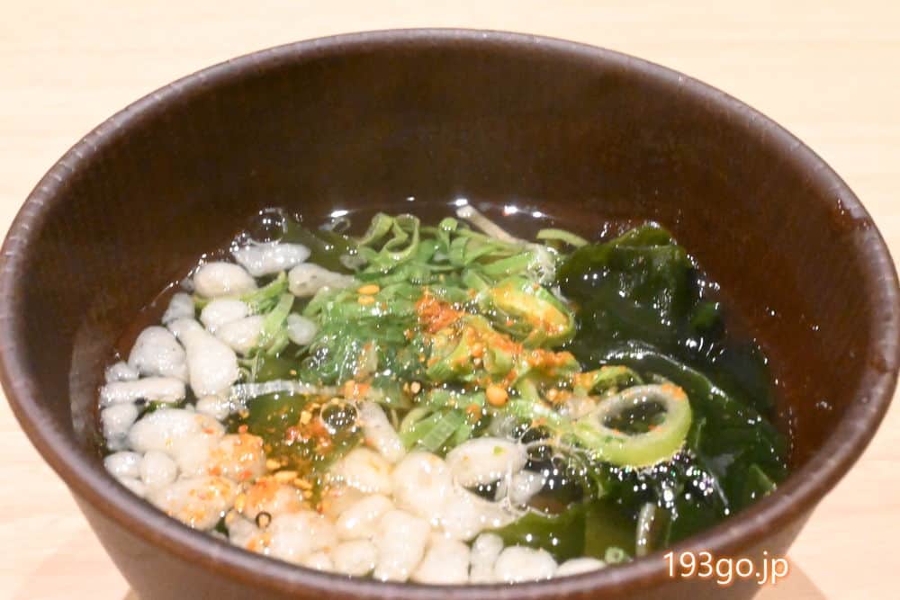 日替わり麺は大阪名物・かすうどん。麺を湯がいて、トッピングを乗せ、出汁を注いでいただきます。