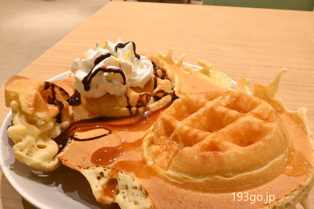 ワッフルメーカーもあり、タネを注いで焼き上げ、クリームなどトッピング。