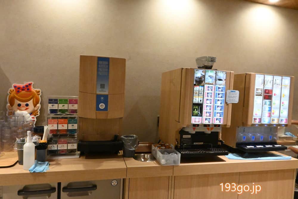 ドリンクバーには、ソフトドリンク、コーヒー、フレーバーティー。