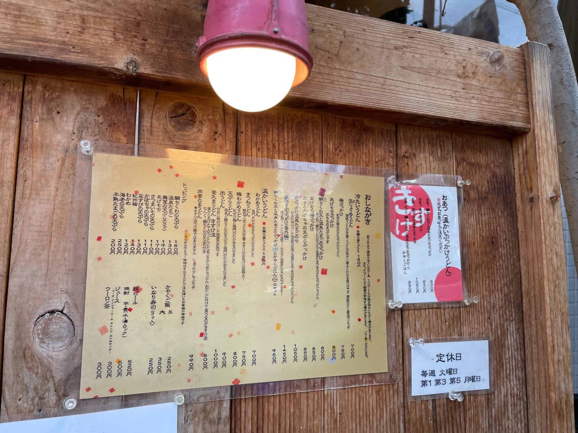 メニュー 温かいうどん、冷たいうどん、ぶっかけ&トッピングも