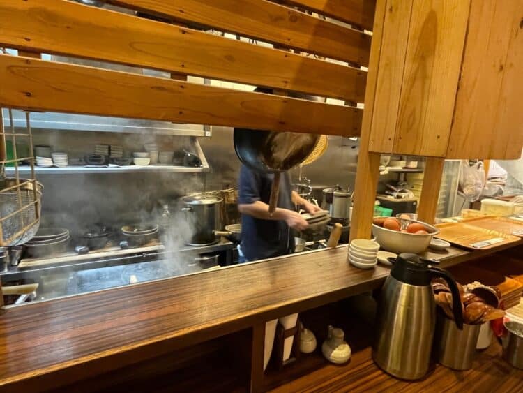 ぷるトロの温泉卵を割りつつ、麺を持ち上げると、弾力がすごい…