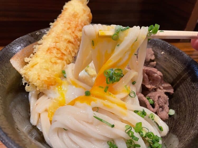 天ぷらうどん:700円、肉うどん:700円、肉釜玉うどん天:950円