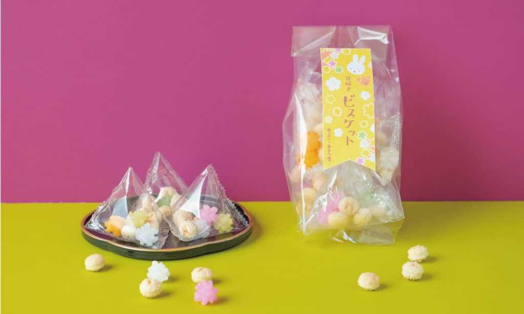 「はんかち枡ぼうろ」限定柄ハンカチにミッフィーの顔入りたまごボーロ