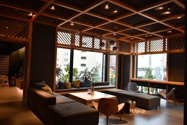 広々ソファーがあるラウンジ「OMOベース」と、朝食、カフェ、バーに利用できる「OMOカフェ」があり日中はPC作業をしてる人も。