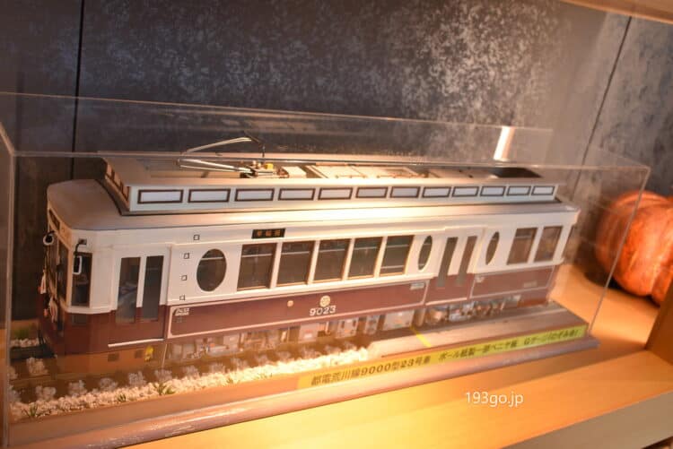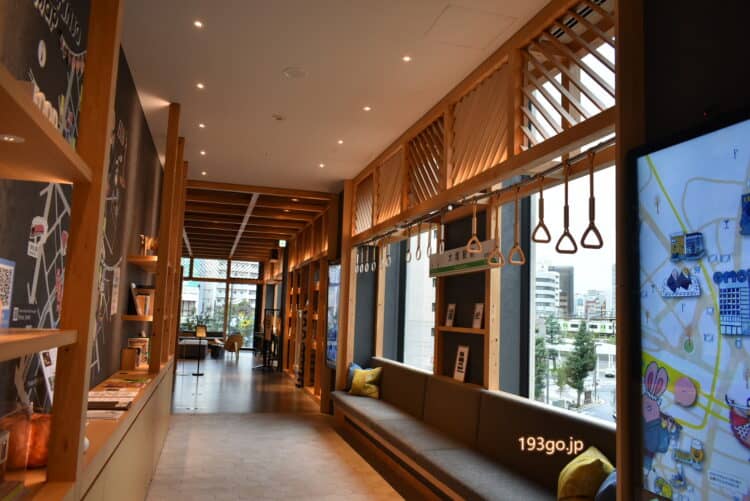 エレベーターでフロント階の4Fに上がると、ロビーにつながる通路に、都電荒川線をイメージしたスポットが。